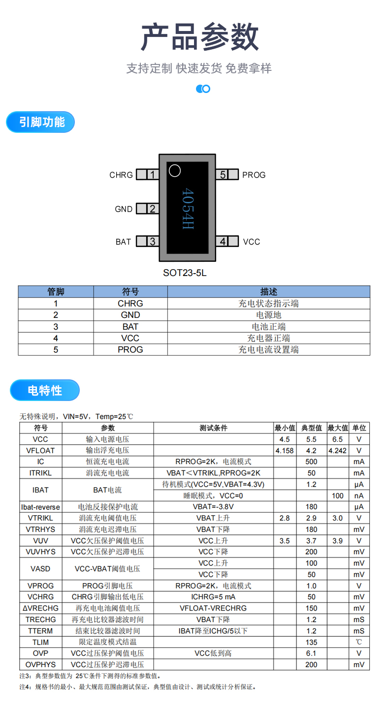 45V高耐压单节锂电池充电芯片 500mA充电电流 苏州XR4054HP