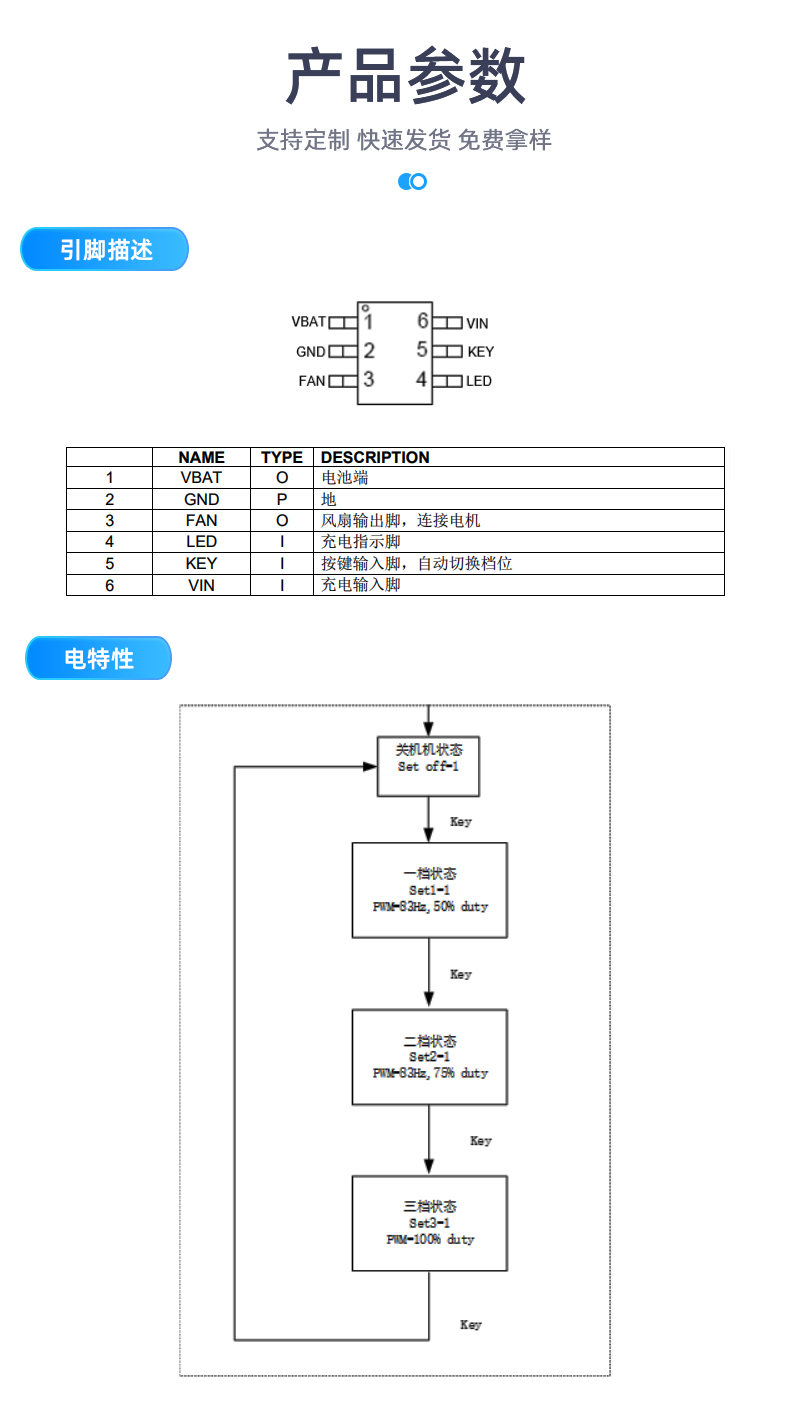 SA8105 SOT23-6 移动小风扇驱动芯片,集成单节锂电池线性充电功能,按键功能,电机驱动功能