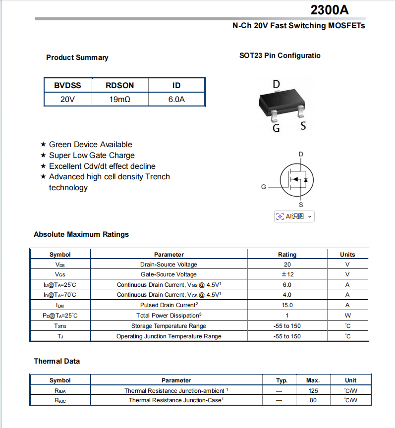 首页 > MOSFET场效应管 > 苏州2300A(N-MOS)